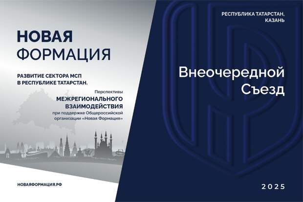 19–20 сентября 2025 года в Казани состоится Внеочередной Съезд Общероссийской организации «Новая Формация», приуроченный ко Дню рождения Организации.