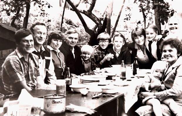 Село Лозовое, отчий дом Анны. Справа от Анны папа Карпо Ефимыч, мама Лукерья Петровна (в белом платочке) в окружении внуков (1986 г.)