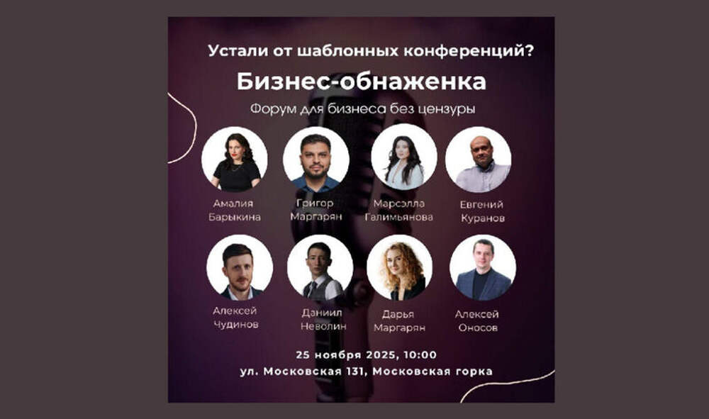 25 ноября в отеле «Московская горка» (Московская, 131) состоится форум для бизнеса без цензуры «БИЗНЕС-ОБНАЖЕНКА». Мероприятие соберёт собственников и топ-менеджеров, чтобы обсудить, как бизнес работает на самом деле. Только 100 мест — интимный формат для максимального погружения. Острые темы, о